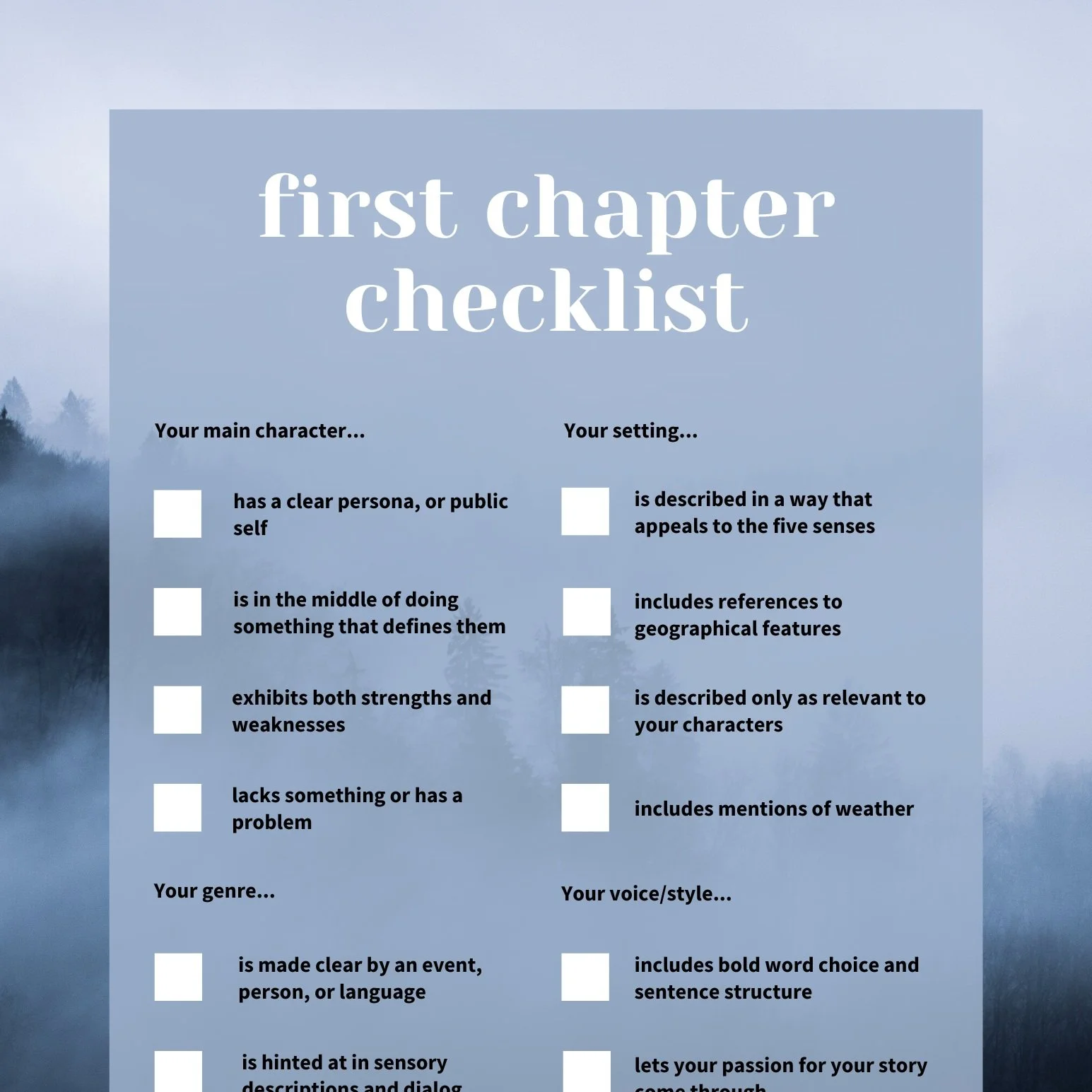 A beautiful, one-page checklist you can use for any first chapter or story opening.